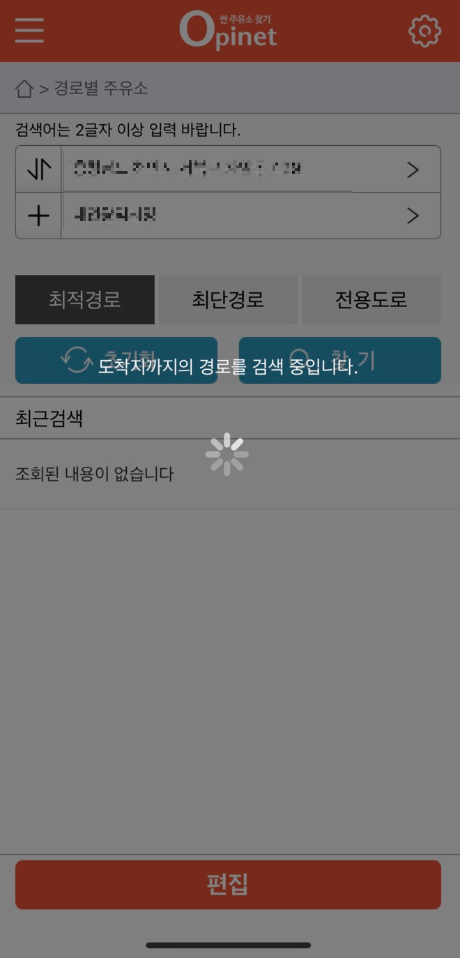 가는 길에 저렴한 주유소 찾기가 생각보다 어려울 수 있지만 쉽게 찾을 수 있습니다. 어플에 들어가서 '경로별 주유소'에 들어가면 사용할 수 있습니다.
