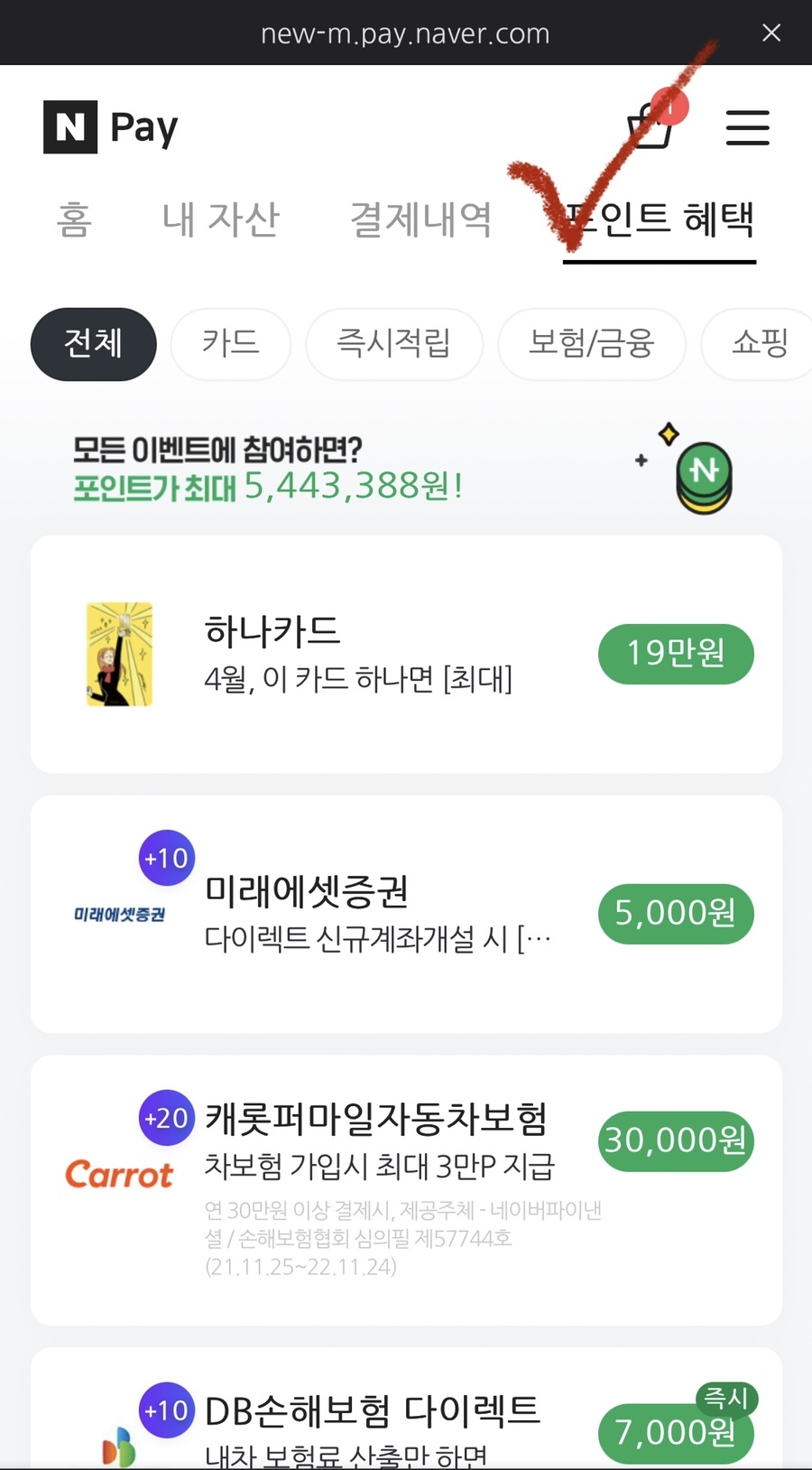그 다음 여기 포인트 혜택에 들어가시면 포인트 노다지가 펼쳐져 있습니다!!