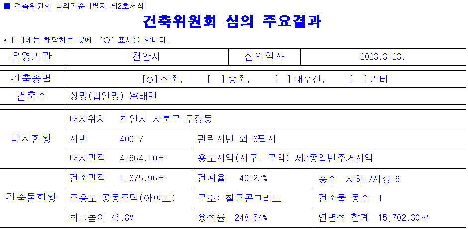 - 위치 : 충청남도 천안시 서북구 두정동 400-7외 3개 필지