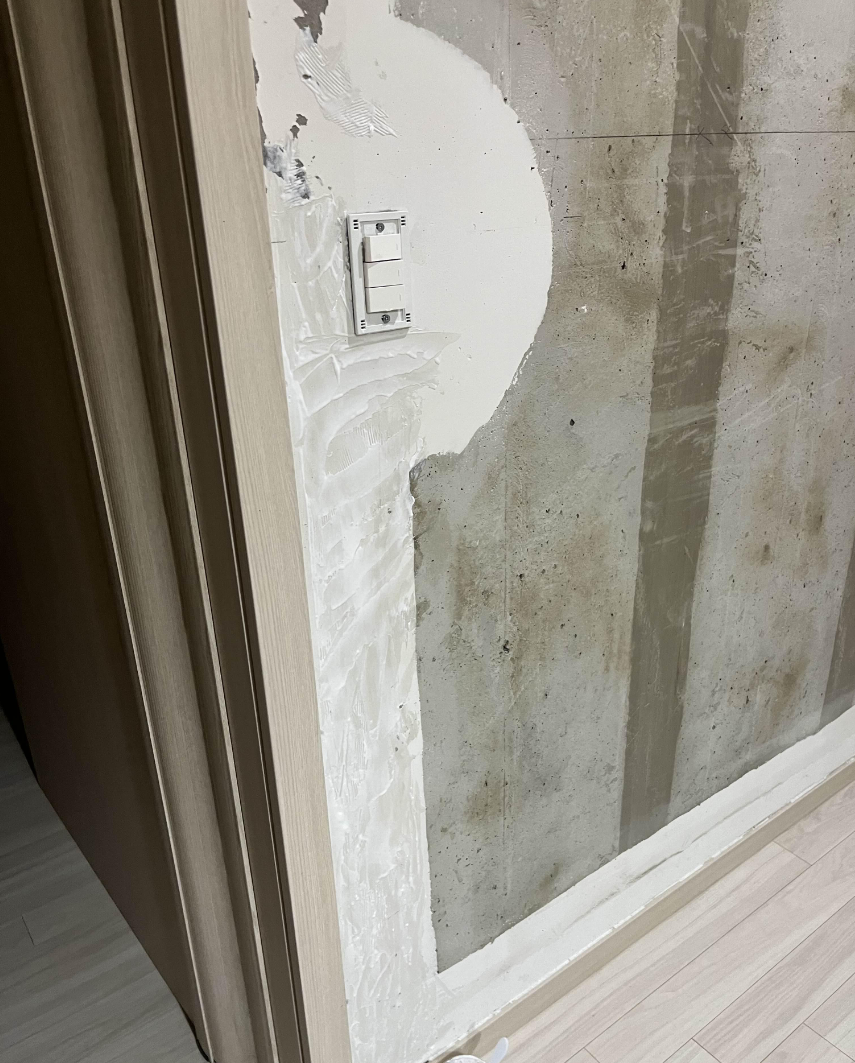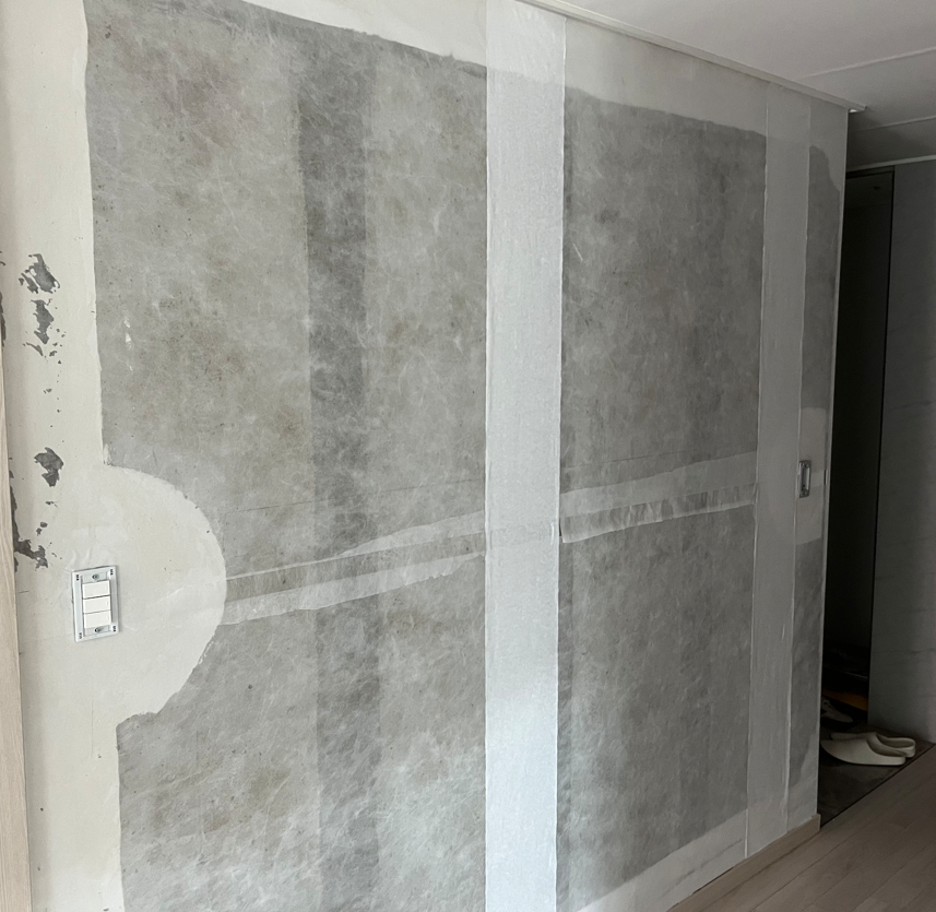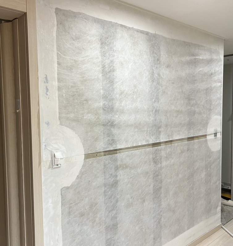 벽지를 완전히 제거해줍니다. 제대로 제거하지 않으면 벽지 시공을 하고 난 부위가 고르지 못하게 됩니다.