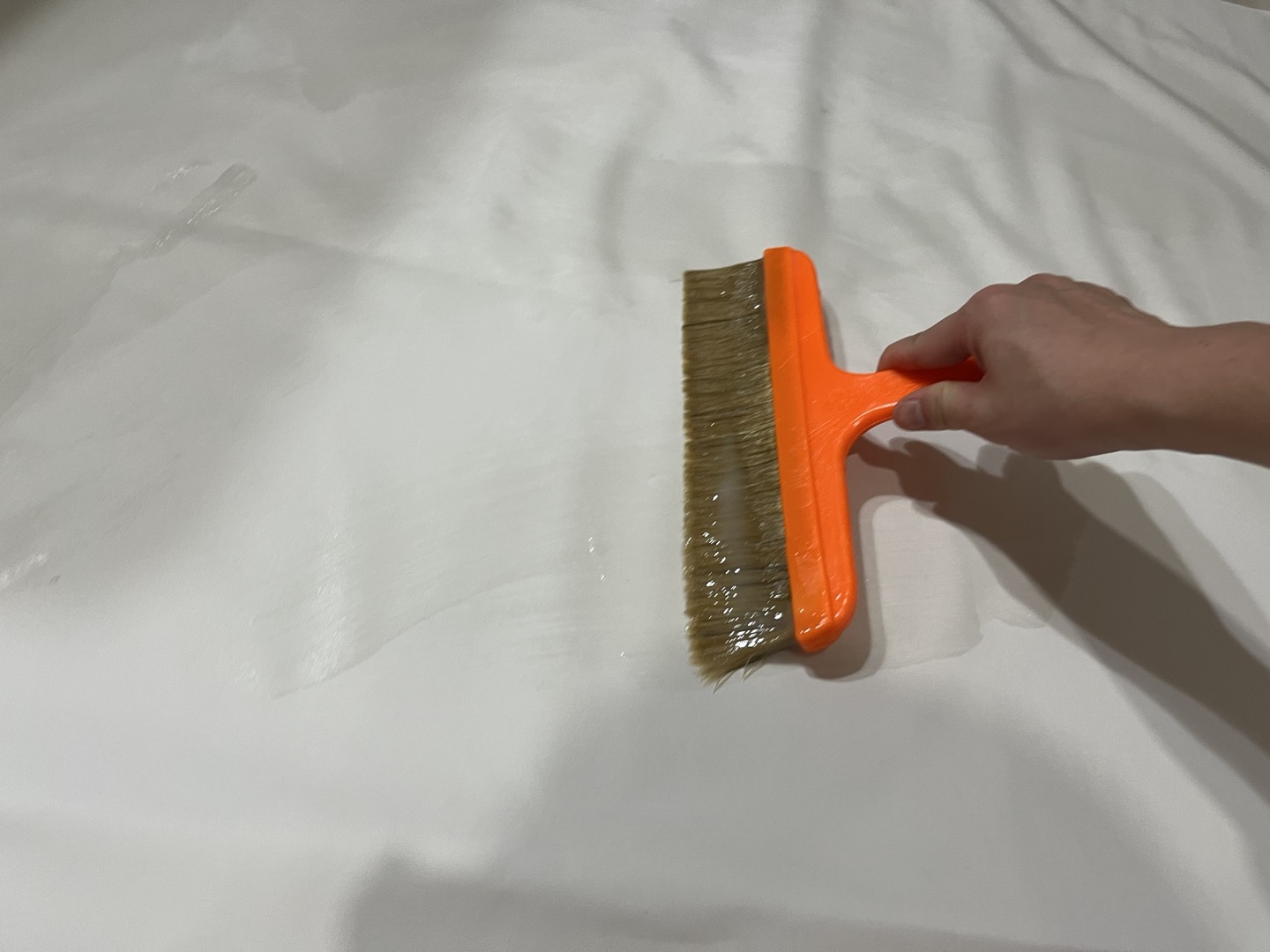 실크벽지에도 풀을 발라줍니다. 저는 잘 부착하기 위해서 본드를 조금 섞어서 풀을 만들었습니다. 풀은 묽지 않게 해주셔야 합니다. 저는 비가 오는 날 진행했는데 풀이 너무 묽어서 잘 안붙어서 엄청 고생했습니다. 찢어먹기도 하구요.