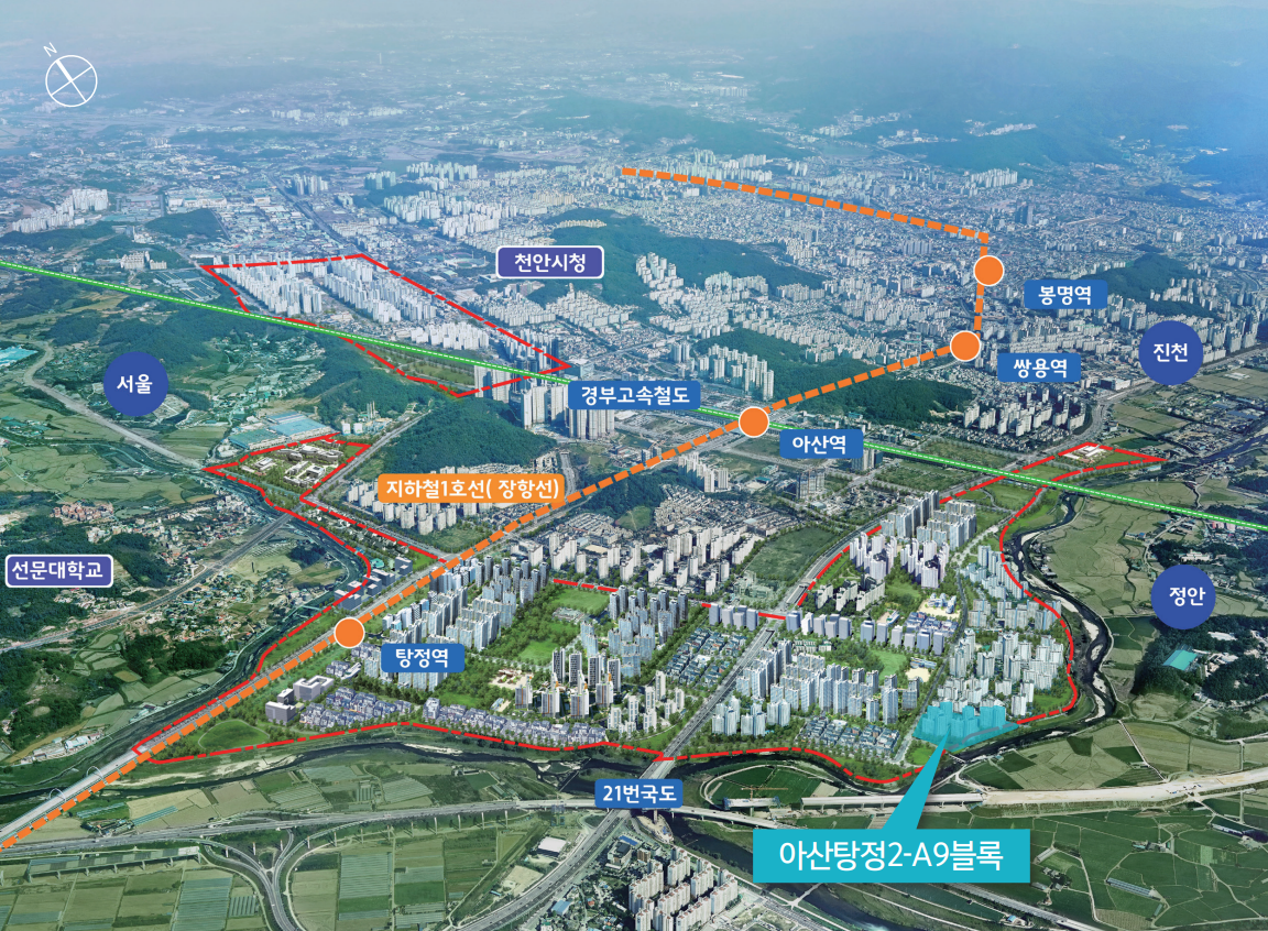 이 행복주택은 탕정 4공구에 위치해있으며 곡교천(천안천) 바로 앞에 위치해있습니다. 탕정역을 도보로 이용하기는 어려운 거리이지만 차량이 있으신 분들이 살기에는 좋은 위치라고 생각됩니다.