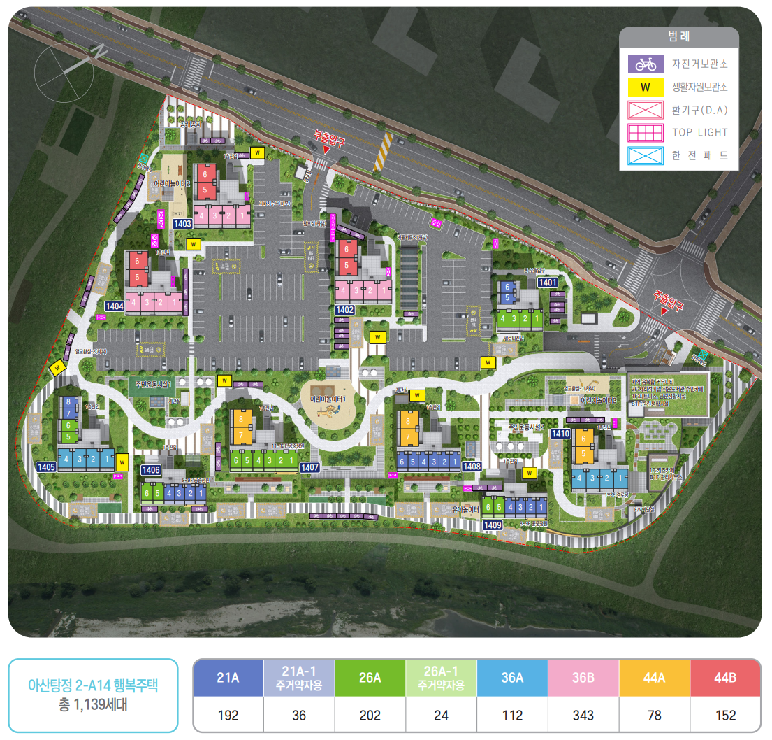 천안아산역 아래 탕정 4공구에 위치해있으며 2-A14BL에 해당합니다.