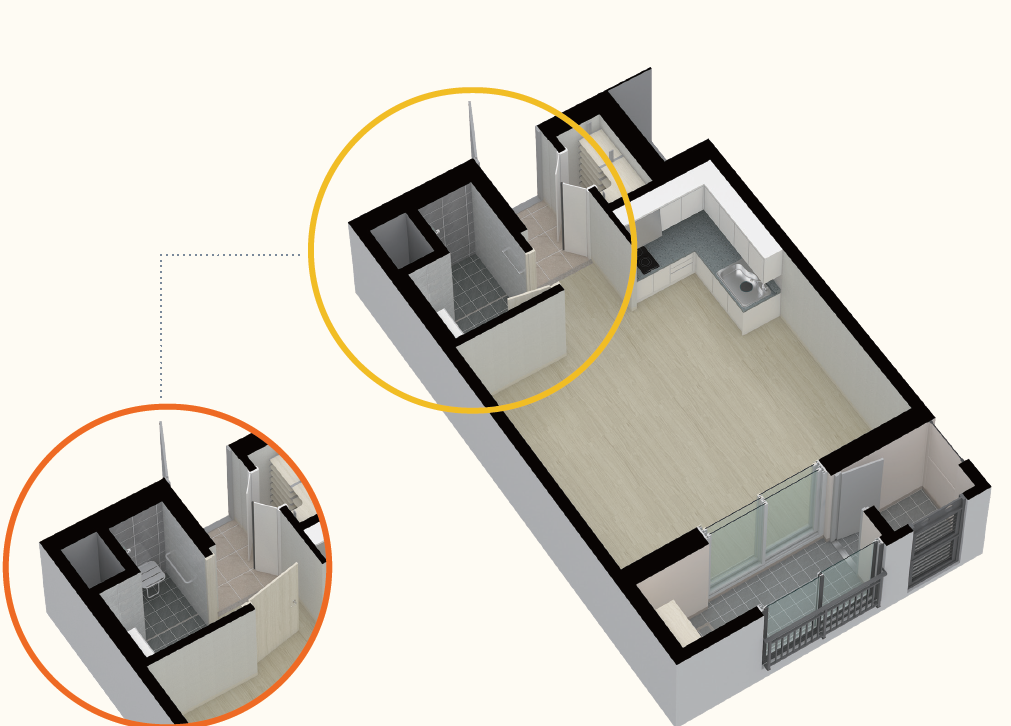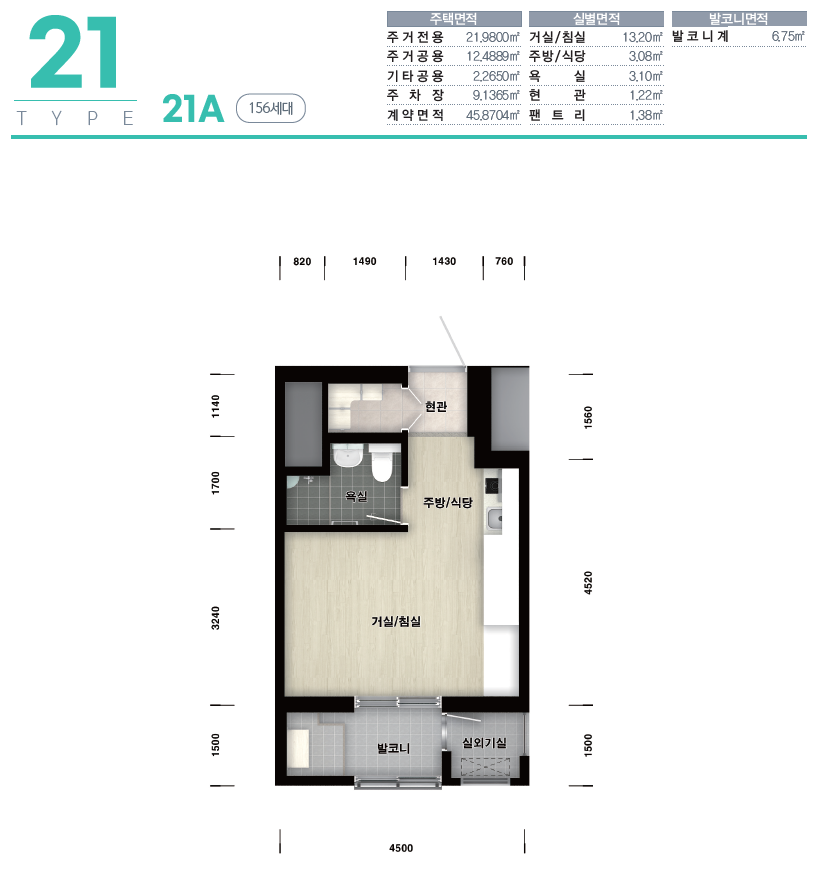 21형은 기본 오피스텔이나 작은 원룸이라고 보시면 됩니다. 보통 행복주택은 옵션이 없어서 입주하기가 많이 곤란한 면이 있습니다. 이 주택형의 경우 하이라이트와 냉장고가 기본 옵션으로 되어있고 냉장고의 경우 빌트인으로 되어있습니다. 21형의 경우 거실 창을 통해 하천뷰를 보실 수 있습니다.