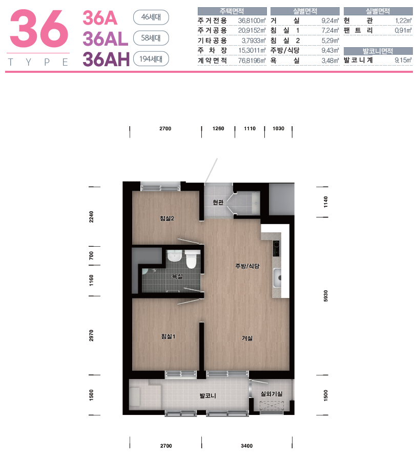 주택 평형 정보
