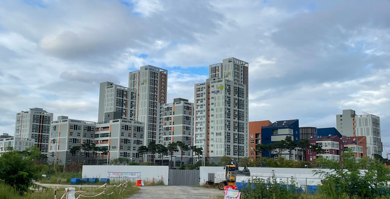 위 사진에서 좌측의 아파트는 LH아파트인데 일반적인 다른 임대아파트와는 다르게 고층으로 지어 쾌적할 것 같습니다. 저번에 보기로는 코오롱에서 시공한 것으로 봤습니다.