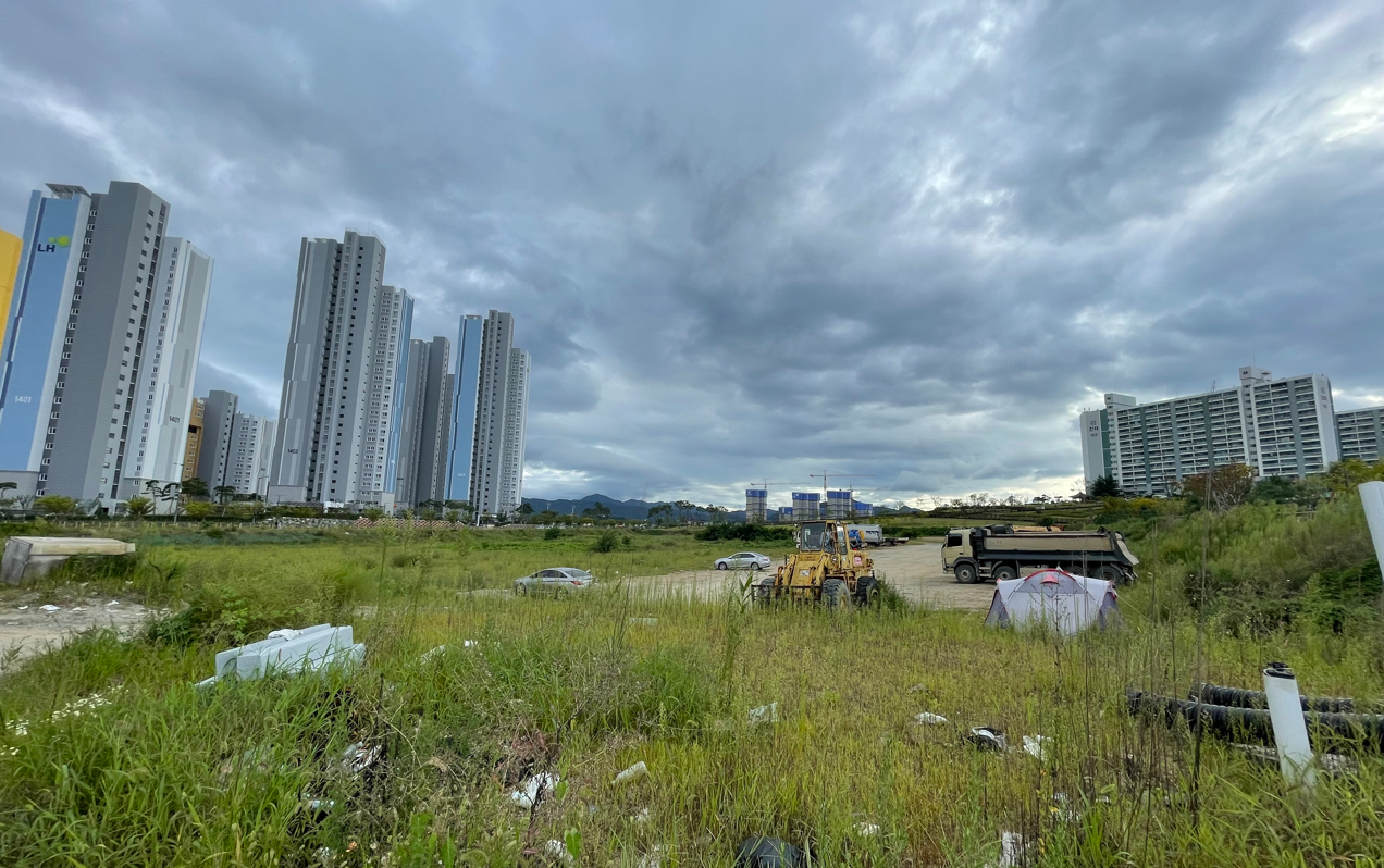 좌측에 건축중인 학교는 층을 거의 완전히 올린 상태였습니다. 23년도 3월이면 완공이 될 예정이기 때문에 차년도 입학을 목표로 건축중인 것으로 보입니다. 올해까지는 행복주택들만 건축이 완료되기 때문에 우측의 초등학교는 건축을 나중에 진행예정인 듯 합니다.
