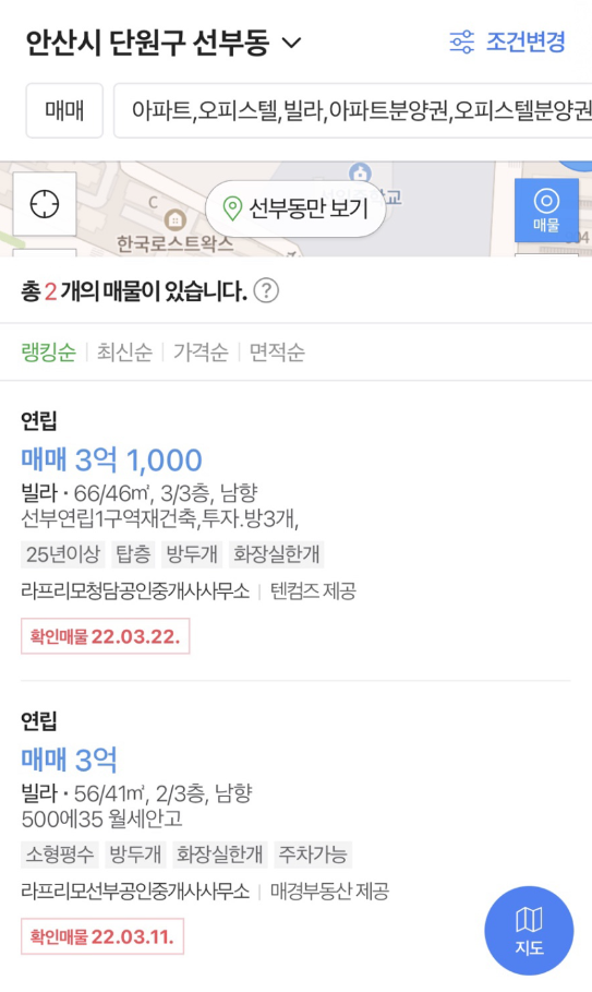 현재 네이버 부동산 기준으로의 시세를 보았을 때 아래의 가격대로 매물이 형성되어있어 예상분담금과 고려하시면 될 것 같습니다