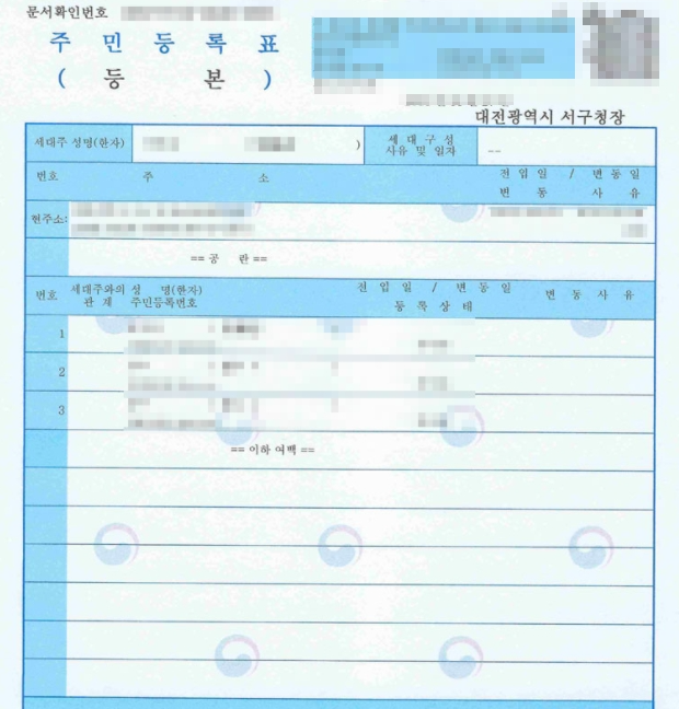주민등록등본은 정부24 홈페이지에서 인터넷 발급이 가능하기 때문에 인터넷으로 발급 후 바로 제출 가능합니다.
