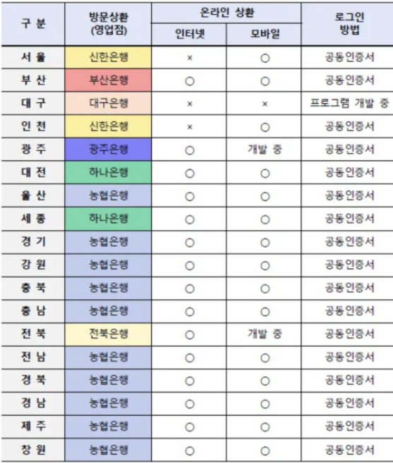 **환급금은 주거래 은행이 아닌 위 지역별 설정된 은행에서만 확인하실 수 있습니다.**