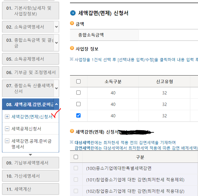 - 종합소득세 신고서에 세액감면 신청서를 작성합니다.