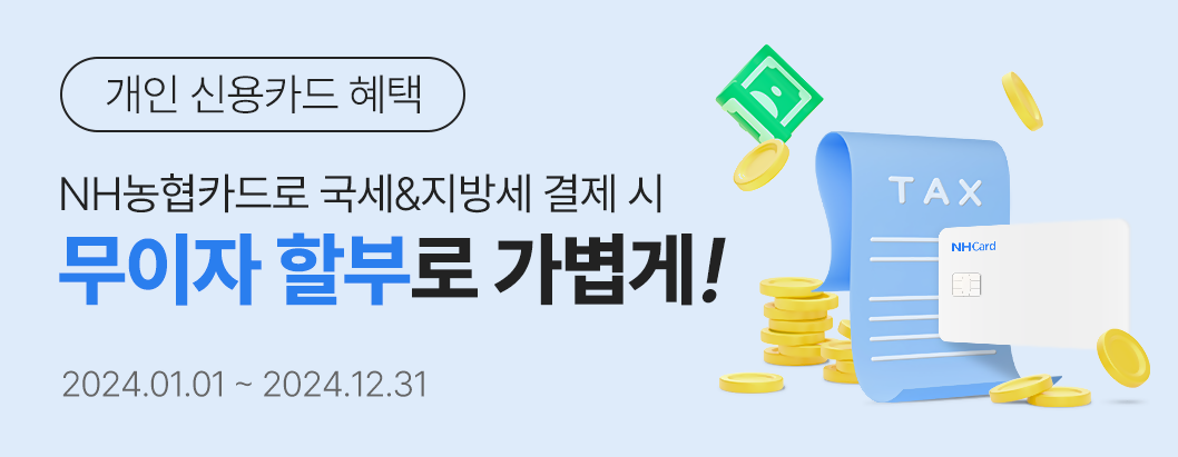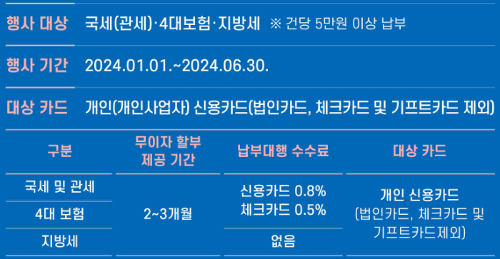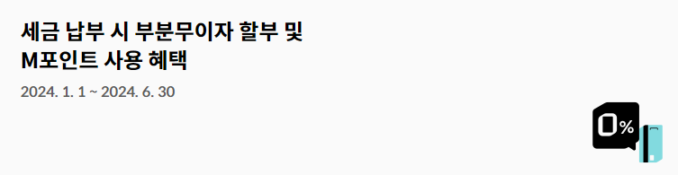 1. 5만원 이상의 세금 납부시에 6/10/12개월 부분 무이자 할부 혜택을 제공합니다.