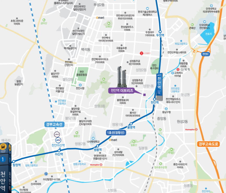 천안역에서 도보 5분 정도의 거리에 위치해있습니다. 상업지역이기 때문에 주상복합으로 지어지게 됩니다. 천안역 서부권의 경우, 힐스테이트가 분양을 진행했고 고분양가로 인하여 미분양으로 남아있긴 하지만 본 아파트는 민간임대 아파트로 진행되기 때문에 미분양 Risk는 낮을 것으로 예상됩니다.
