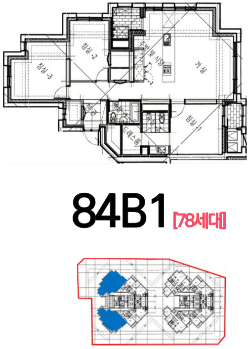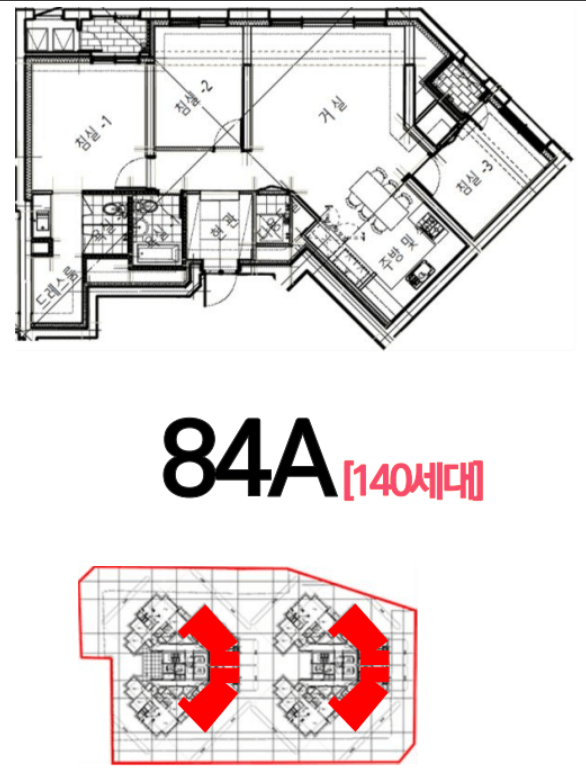 평면도의 집 구조를 볼때는 주상복합이라 기둥으로 인해 일반 아파트와 구조에 차이가 있습니다. 그래도 구조만으로만 보았을 때 힐스테이트 스카이움보다는 더 잘 짜여있는 것 같습니다.