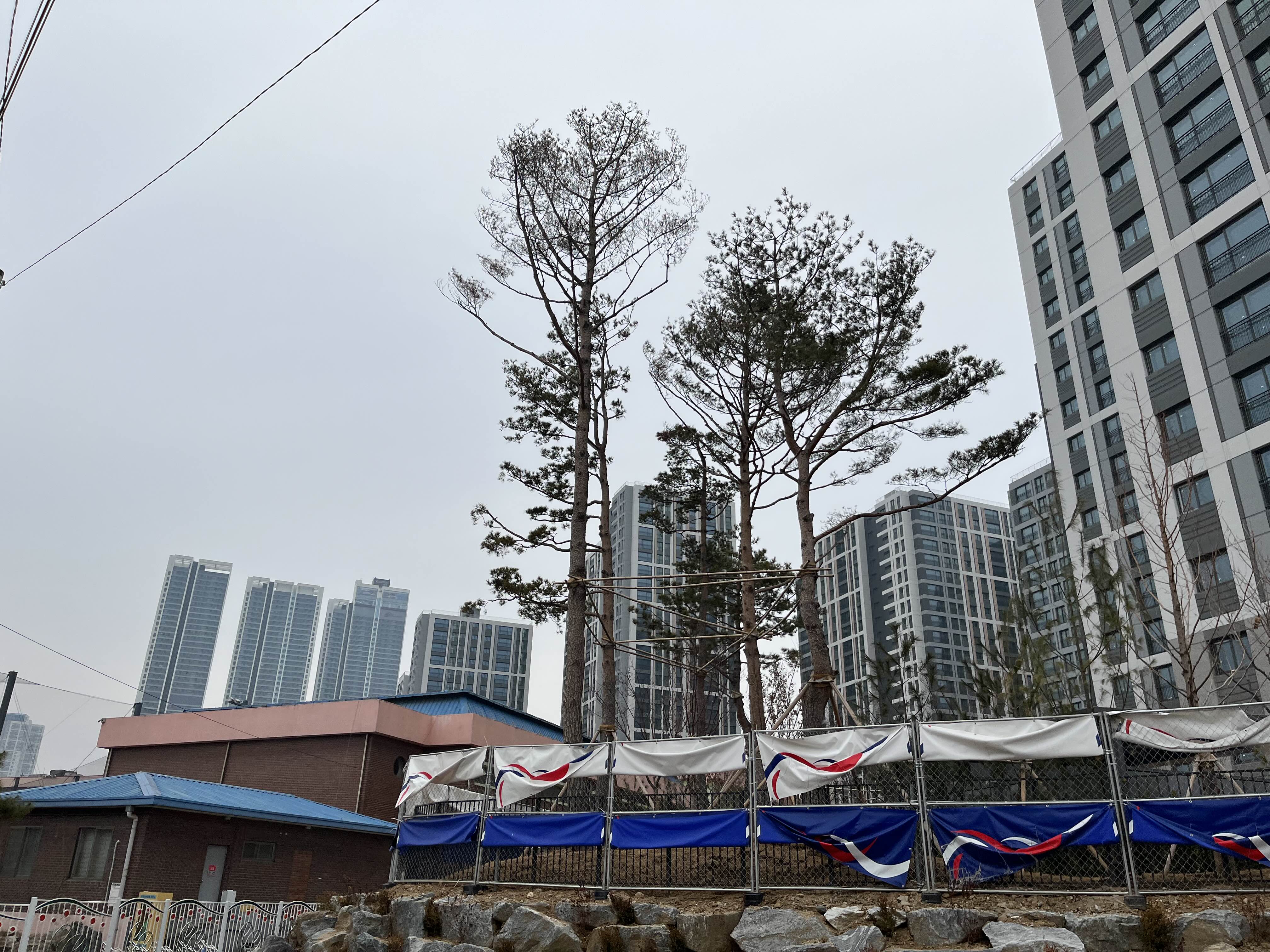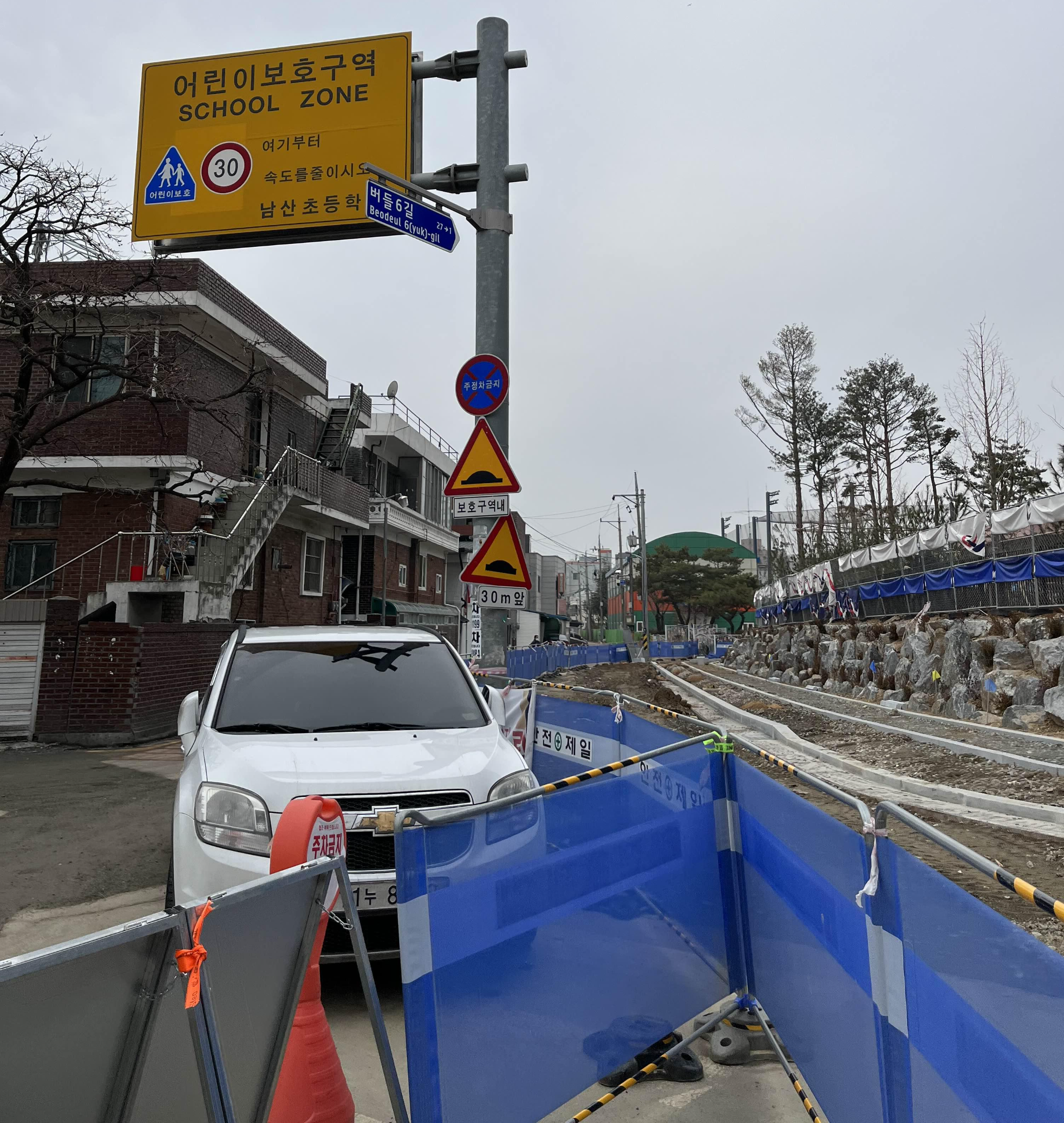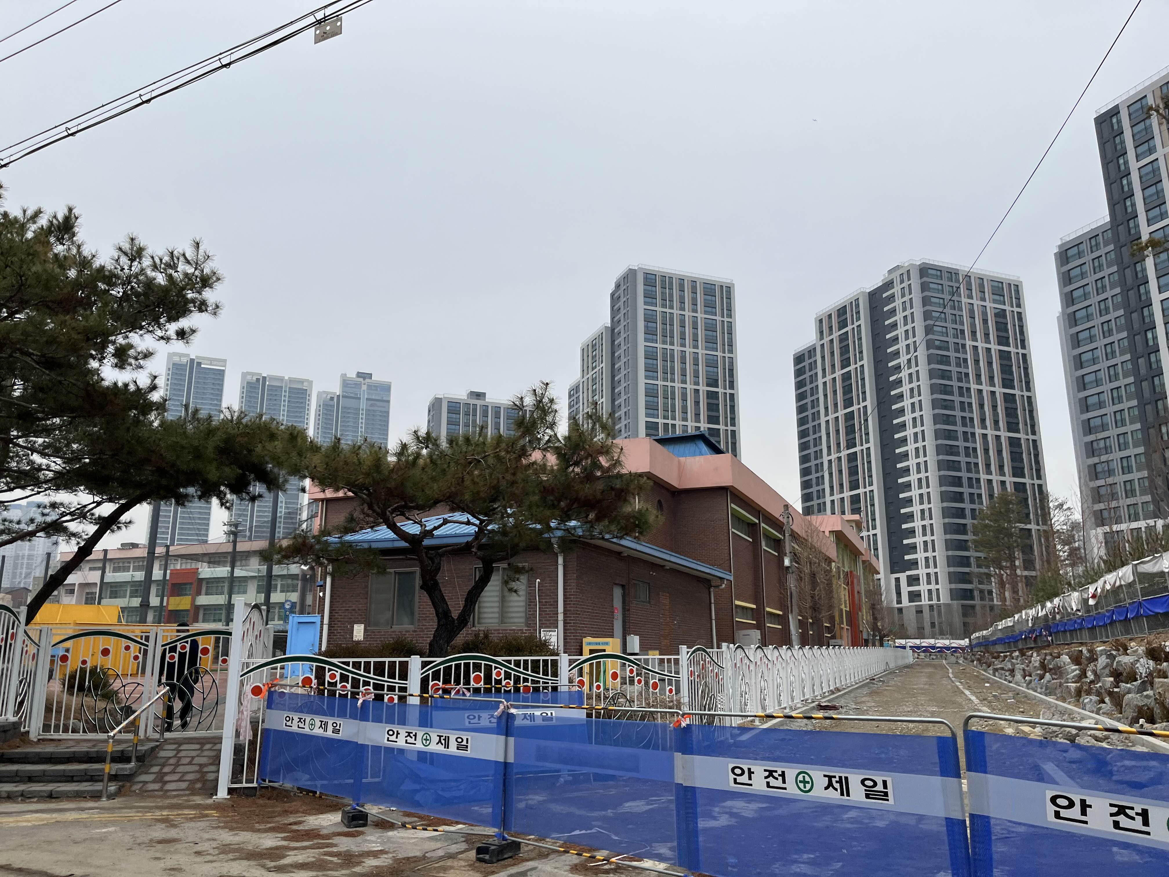 GS더프레시가 있는 쪽에 정문이 위치하는 것 같습니다. 도색이 완료된 모습을 보니 더 멋있는 것 같습니다. 사진의 우측은 GS더프레시가 있습니다.