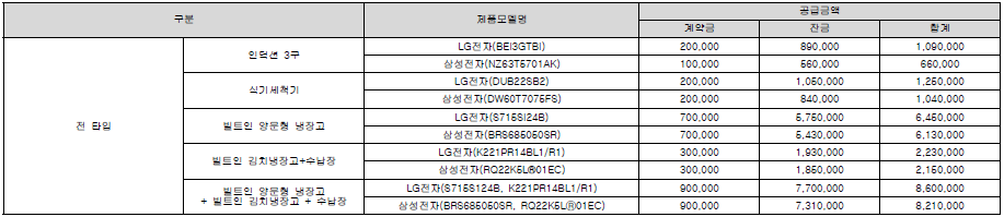 분양 가격(확장 및 옵션비 포함)