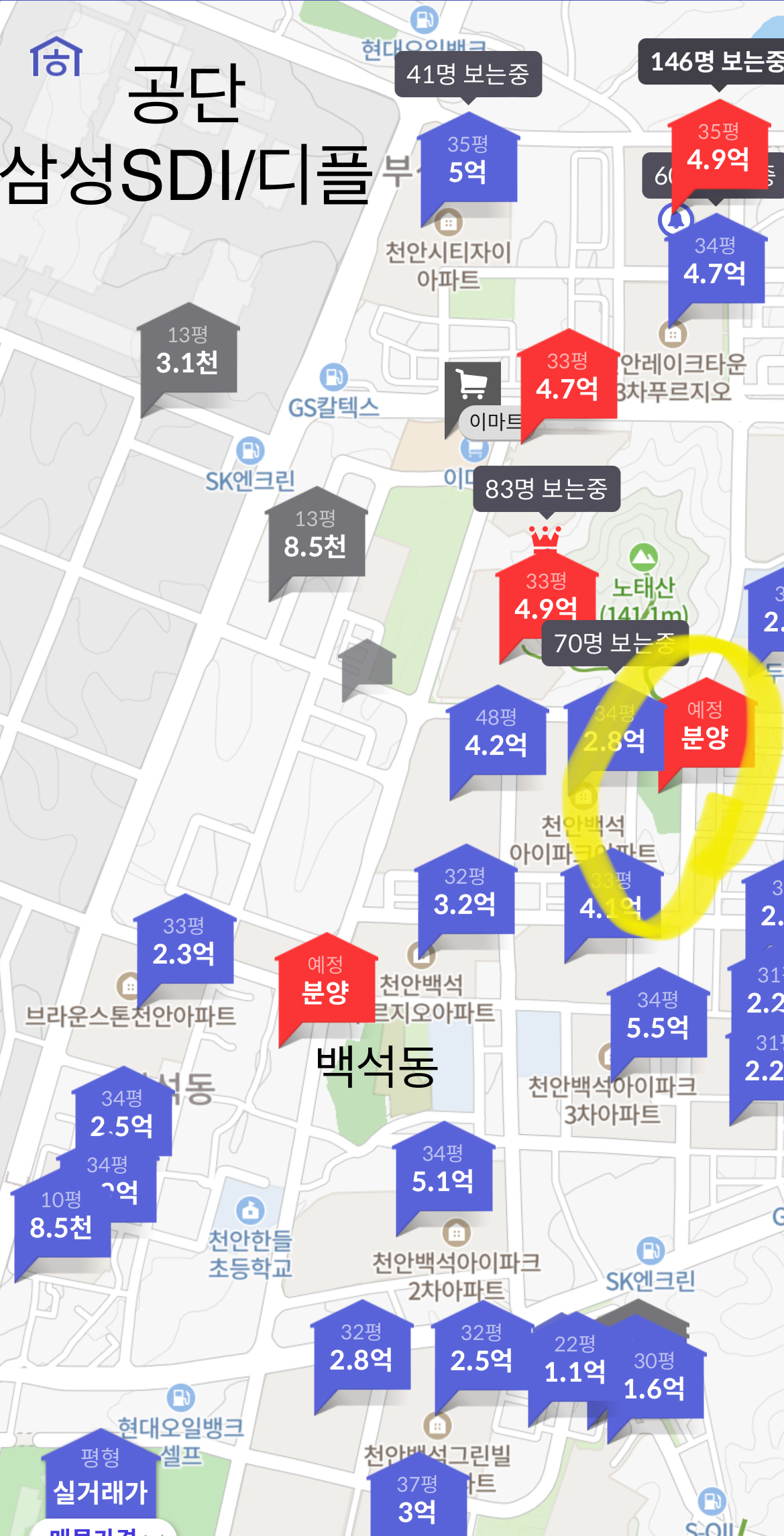 백석동 좌측으로는 백석공단이 위치해있고, 우측은 두정동, 북측은 성성동입니다. 두정동보다는 백석동과 성성동이 높은 가격대로 형성이 되어있습니다. 아무래도 두정동보다는 백석, 성성동은 이후에 구축된 지역이다보니 가격대가 높게 형성되어있습니다.