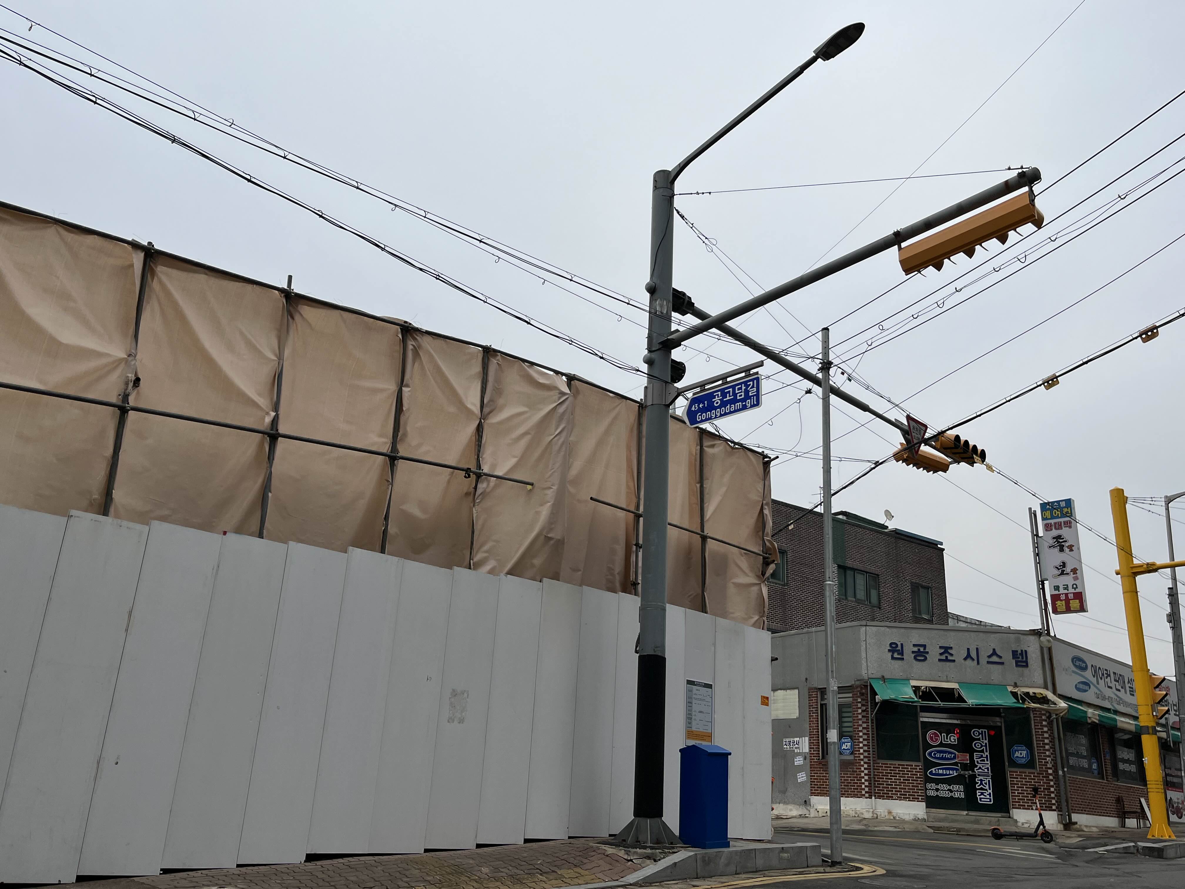 천안공고 맞은편으로는 이렇게 가림막이 쭉 설치되어 있습니다. 시험기간 및 수업시간에 공사 소음으로 인한 컴플레인이 있을 것으로 보여 철거 및 공사 기간을 신속하게 진행해야할 것 같습니다.