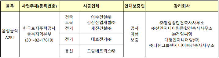- 음성금석 A2 - 국민임대(500세대) - 이수건설(브라운스톤), 강산산업개발, 세진건설