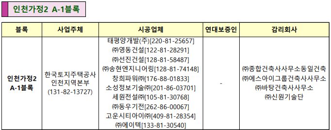 - 인천가정2 A1 - 행복주택(510세대) - 태평양개발, 영동건설(보듬채), 선진건설 등