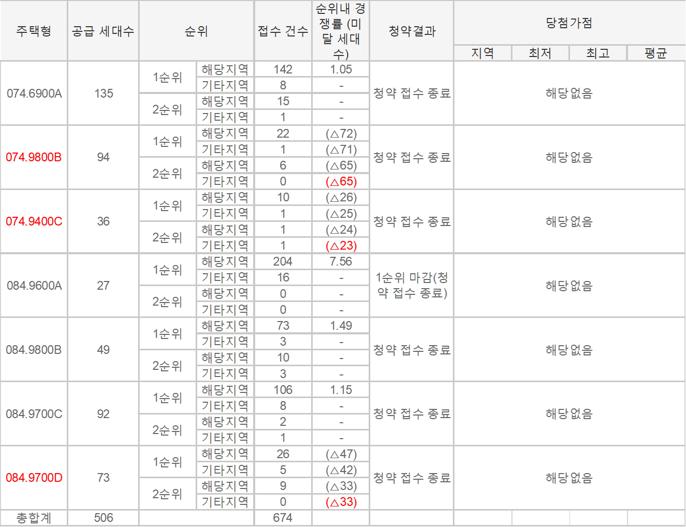 이편한세상 탕정 퍼스트드림의 경우 타입이 워낙 많아서 고르는 데 시간을 많이 쓰셨을 것 같습니다. 게다가 타입이 워낙 다양하고 세대 안내 타입명과 청약홈의 이름이 달라 헷갈리셨던 분들이 많이 있었을 것 같습니다. 위에 이편한세상에서 제공했던 주택형과 같이 청약경쟁률을 표기하였습니다.