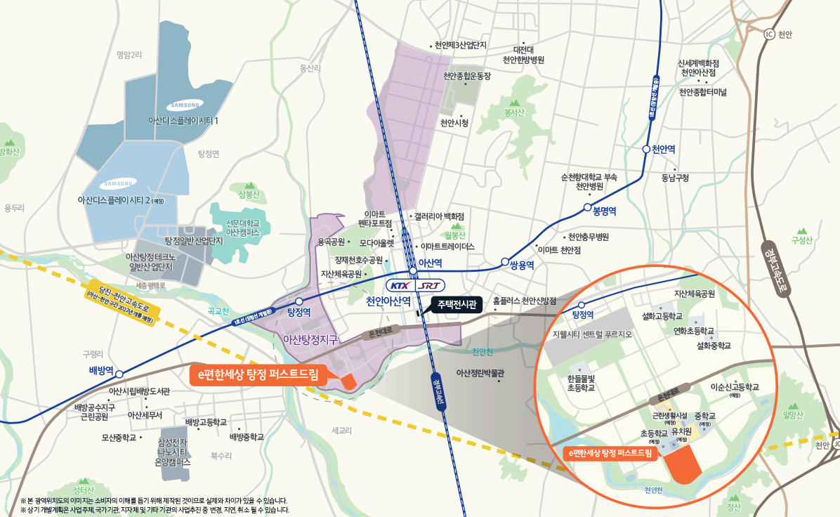 위치는 탕정 4공구에 해당하며 아산의 도시계획을 기반으로 형성된 주거 지역입니다. 탕정역을 기반으로 계획되었습니다. 탕정역이 생기게 된 이유도 이렇게 도시계획을 통해 인프라와 인구를 확보해서 사업성을 확보했기 때문입니다.