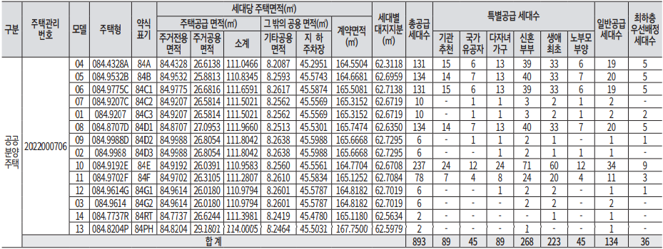 이편한세상 퍼스트드림의 경우 공공택지개발이기 때문에 분양가 상한제를 적용받는 아파트이며 특별공급의 양도 많습니다. 특별공급이 총 공급세대의 85%를 차지하기 때문에 특별공급으로 넣으셔야 당첨확률이 커집니다. 총 893세대인데 일반공급의 세대수는 134세대입니다. 가장 가능성이 높은 특별공급은 신혼부부와 생애 최초로 보입니다. 공공분양주택이기 때문에 유주택자는 청약을 아예 진행할 수 없으며 일반청약도 무주택자만 진행할 수 있습니다.