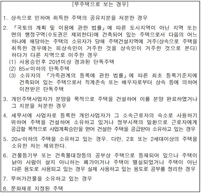 *주택수와 관련하여 아래에 해당하는 경우, 실제로 주택을 보유하고 있어도 무주택으로 간주되는 점 참고하셔서 대출 가능 여부를 확인해보시면 좋을 것 같습니다.