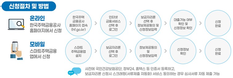 대상주택, 자격과 금리까지 확인하셨다면 신청방법에 대해서 알아보겠습니다. 또한 어떤 서류를 준비해야하는지 어떻게 하면 서류를 알아서 제출해주게 하는지! 확인해보도록 하겠습니다.
