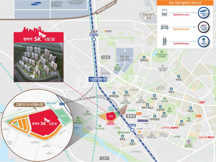 평택역을 도보로도 이용할 수 있을만큼 가까운 거리에 위치해 있습니다. 바로 단지 우측에는 공원까지 조성되어 단지 자체는 쾌적할 것으로 보여집니다. 신규 개발되는 택지지구이기 때문에 아직 상권은 크게 발달해있지 않지만 평택역 주변이라 상권 이용에는 큰 문제가 없을 것으로 보여집니다.
