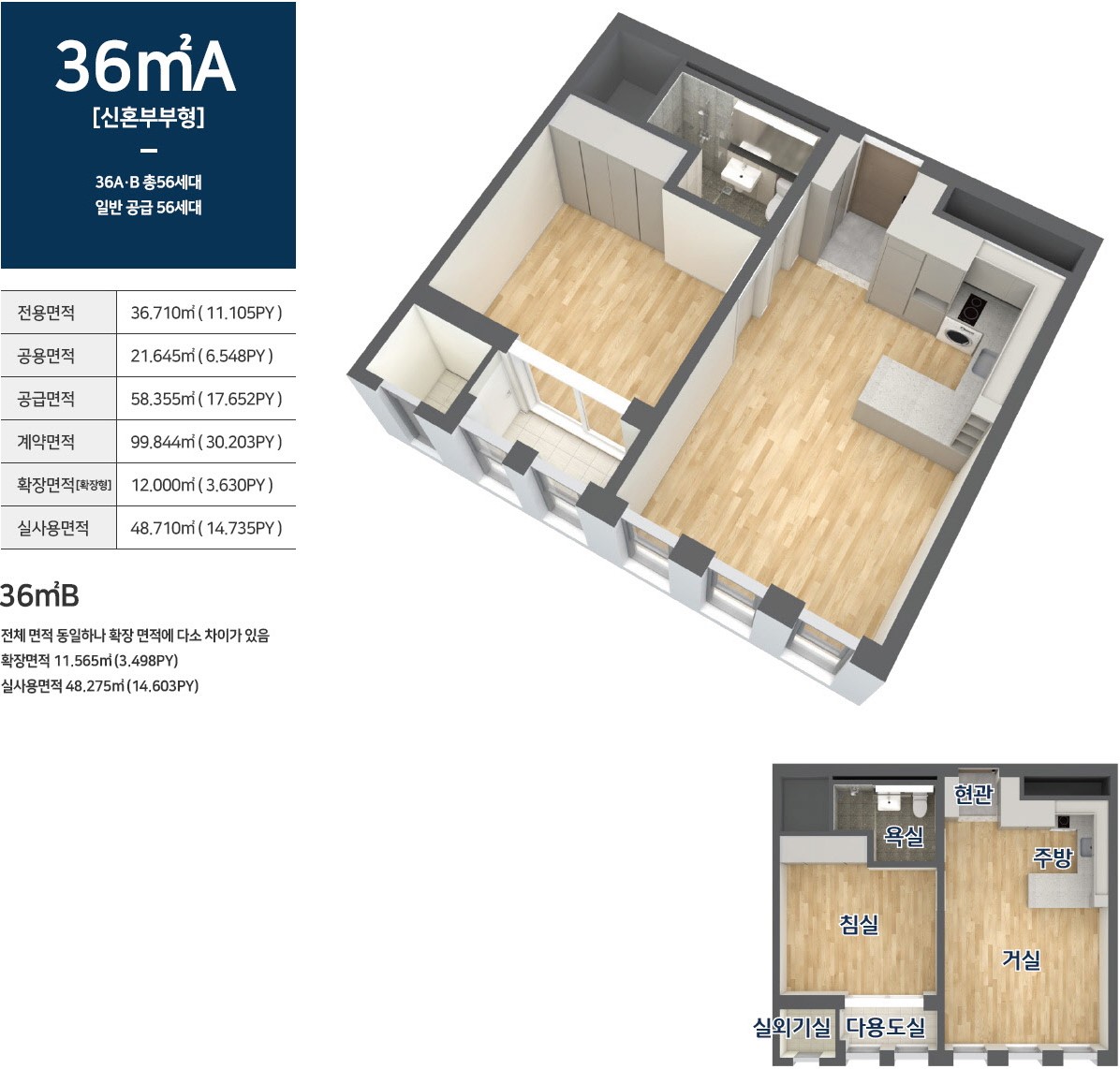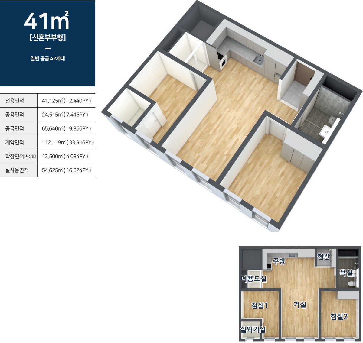 41형은 투룸입니다. 그리고 다용도실이 별도로 있어 가장 선호도가 높을 것으로 보입니다.