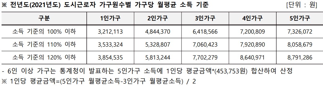 소득이 있는 사람은 본인의 작년도(2021년) 소득을 기준으로 산정됩니다(가족과 주민등록이 함께 되어있다고 하더라도 본인의 소득만 보게 됩니다). 만약 소득이 없는 경우, 주민등록에 관계없이 부모님의 소득과 합산하여 산출됩니다.