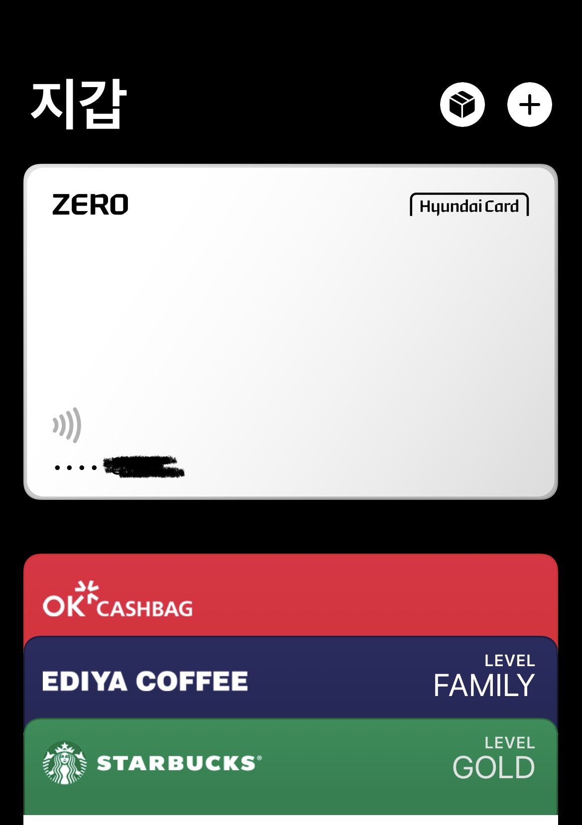 이제 막 애플페이가 도입되었고 현재는 ‘현대카드’만 등록할 수 있습니다. 등록하면 아래와 같이 현대카드가 지갑 어플에 등록됩니다.