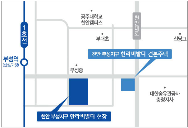 위치는 한라비발디 건설현장 바로 근처에 위치해있고 바로 건너편에는 LH 임대아파트가 건축이 거의 완료된 상태입니다. 주소는 천안시 서북구 부대동 822로 검색하시면 됩니다. 위치가 어려우신 경우 1533.0528로 연락하시면 견본주택으로 연결됩니다. 시간이 여유로우신 분들은 주변을 한 번 돌아보시는 것도 좋을 것 같습니다. 더우니 시원한 음료를 챙겨가세요!