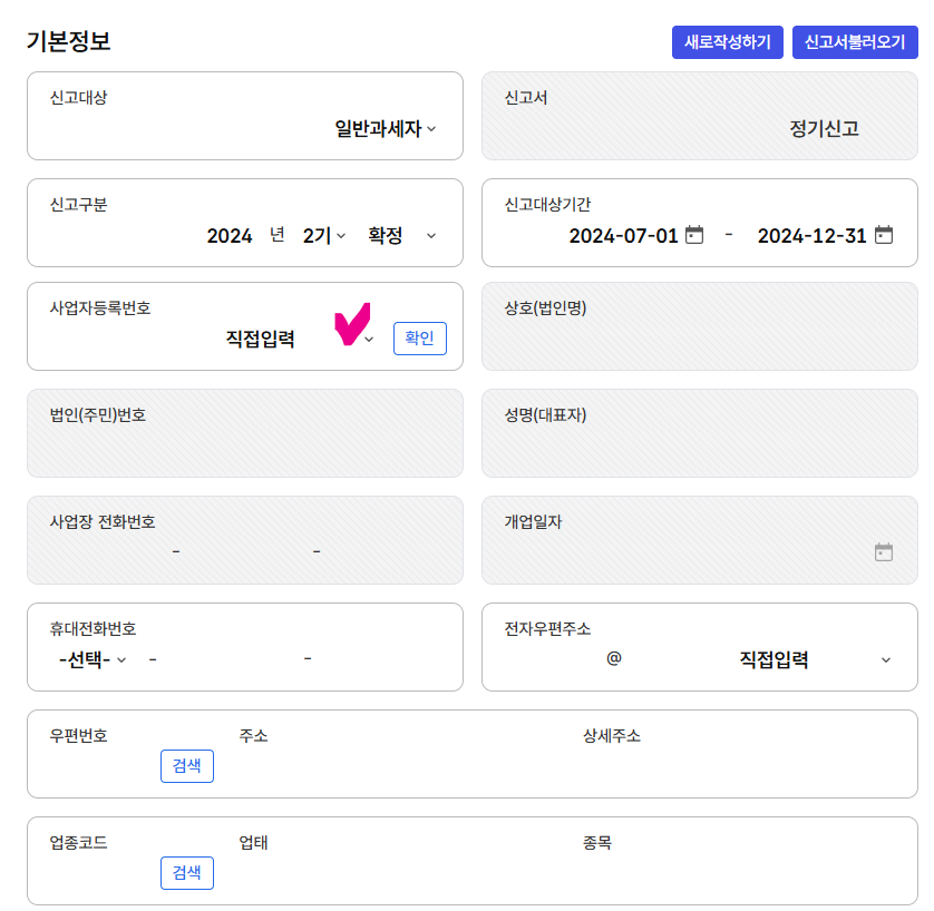 이제 부가가치세 신고를 위한 내용 입력을 시작하겠습니다.
