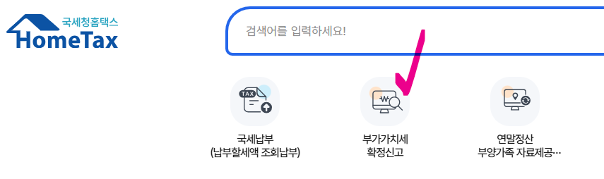 로그인을 완료하면 부가가치세 확정신고를 들어가 신고를 시작해야 합니다. 아래와 같은 화면이신 경우 아래의 부가가치세 확정신고를 눌러주세요.