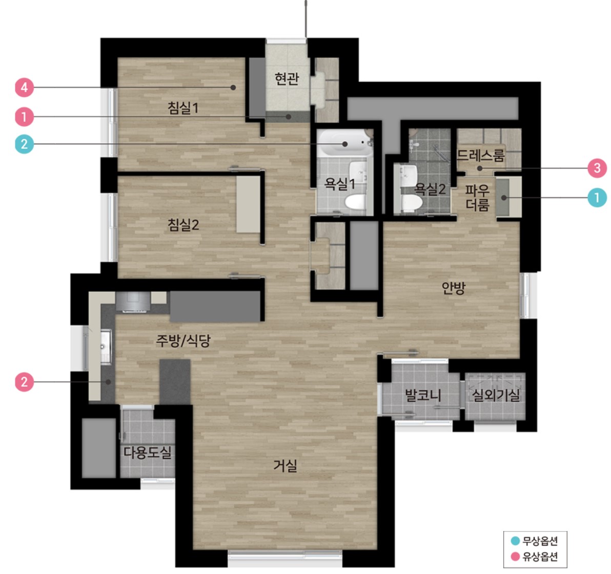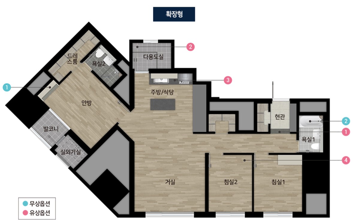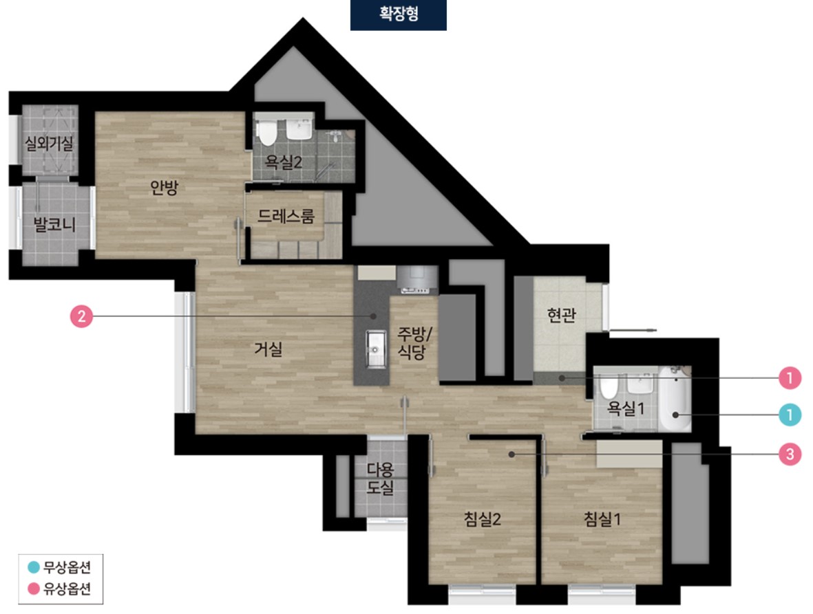 가장 좋지 않은 타입인 것 같습니다. 다른 타입 또는 평형의 아파트를 선택하기는 게 좋을 것 같습니다.