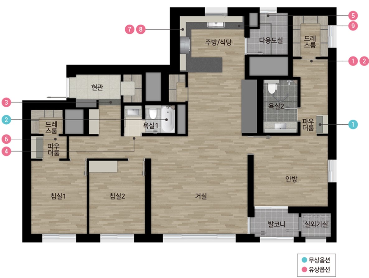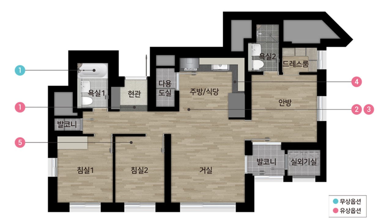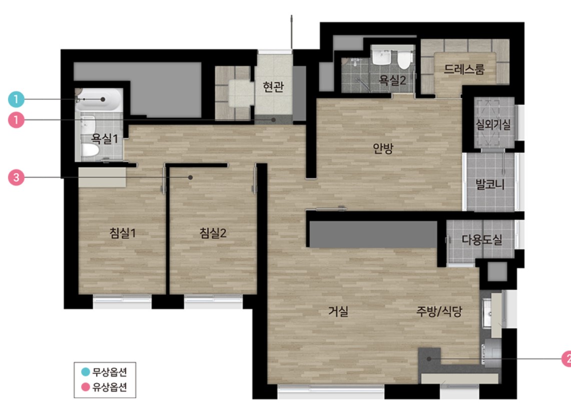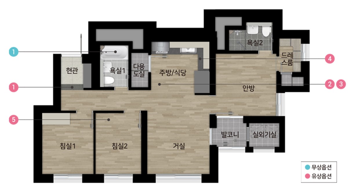 가장 좋지 않은 타입인 것 같습니다. 다른 타입 또는 평형의 아파트를 선택하기는 게 좋을 것 같습니다.