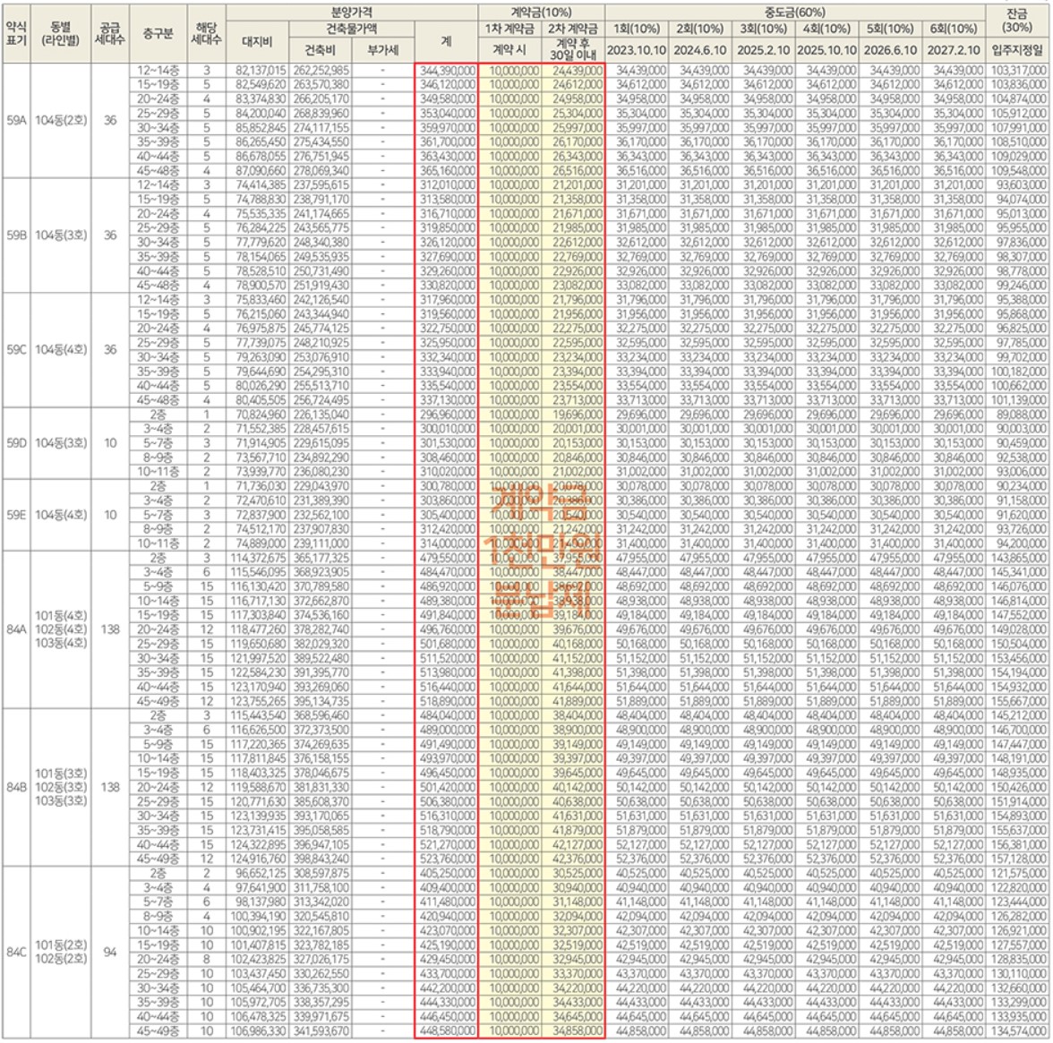 주택형 : 59, 84, 114m2(아파트), 84m2(오피스텔)