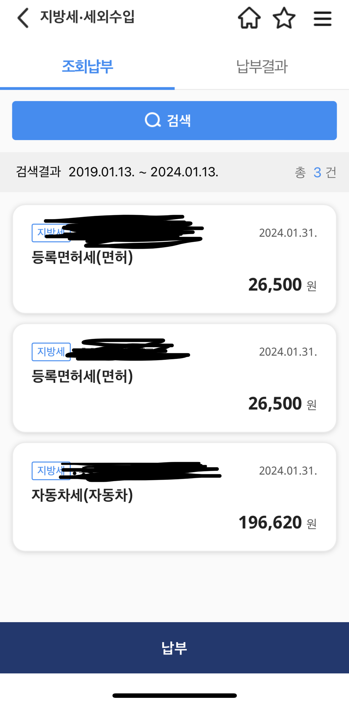 **전북의 경우 01.17(수) 18:00 ~ 01.18(목) 09:00까지 납부가 불가능합니다.