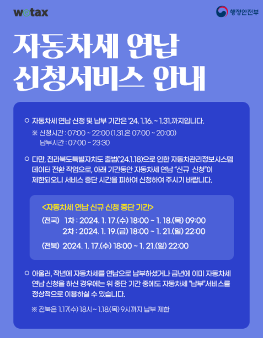 - 연납 신청 일정 : 2024. 01. 16 ~ 01. 31