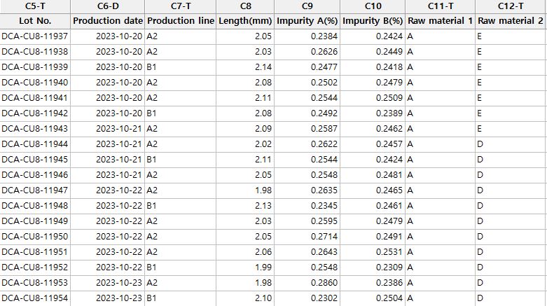 그러면 이 결과를 바탕으로 해당 원재료가 다른 원재료와 어떤 차이가 있고 뭐때문에 이 차이가 발생하는지 확인되었습니다. 이제 관련 조사와 개선대책을 진행하면 빠르고 정확한 분석을 진행할 수 있을 겁니다. 구분 조건을 2개 이상 선택하면 우측과 같이 복잡하게 나와 보기가 어려운데 저 같은 경우에는 시계열도 목적이 쉽게 파악하기 위한 목적이 크기 때문에 구분 기준을 1개로 보통 선택하여 비교합니다.